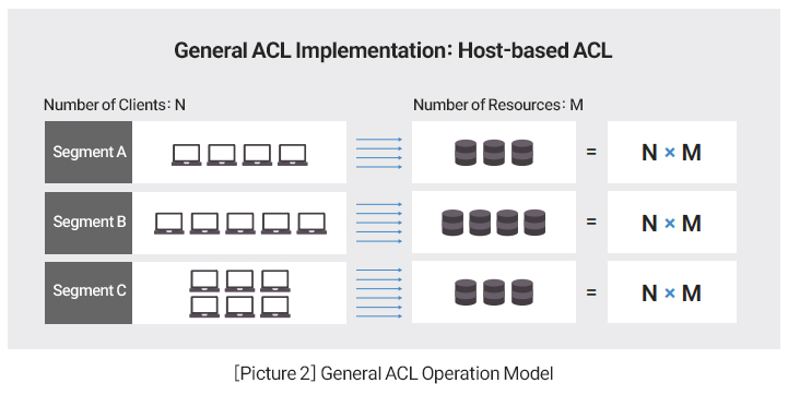 Configuring and operating ACL policies on L2 switches is complex and inefficient due to functional limitations and the management complexity of distributed network environments. For these reasons, ACLs on L2 switches are typically used as a supplementary feature for simple access control, while NAC (Network Access Control) solutions and firewalls are used to control access to critical resources.