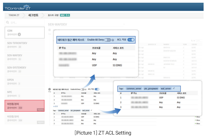 TiFRONT ZT ACL (hereafter referred to as “ZT ACL”) is an access control solution designed on a Zero Trust architecture to address these challenges. By centrally managing ACLs distributed across security switches through the TiController ZT platform, ZT ACL significantly reduces management complexity while strengthening overall security.