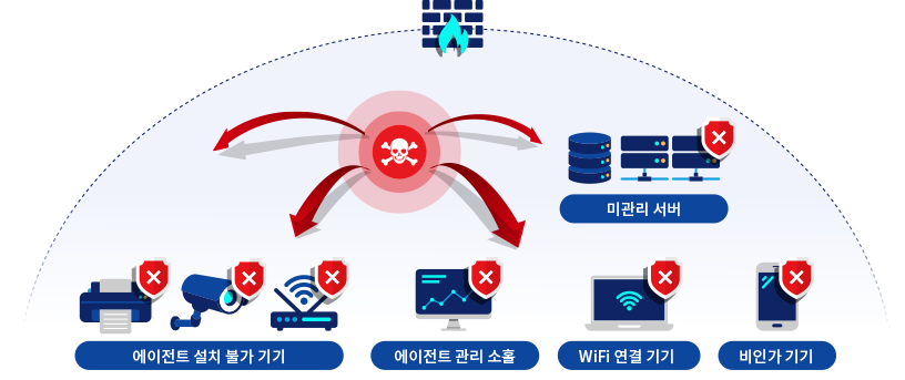 미관리 클라이언트는 리소스 접근을 자동으로 차단 또는 격리합니다.