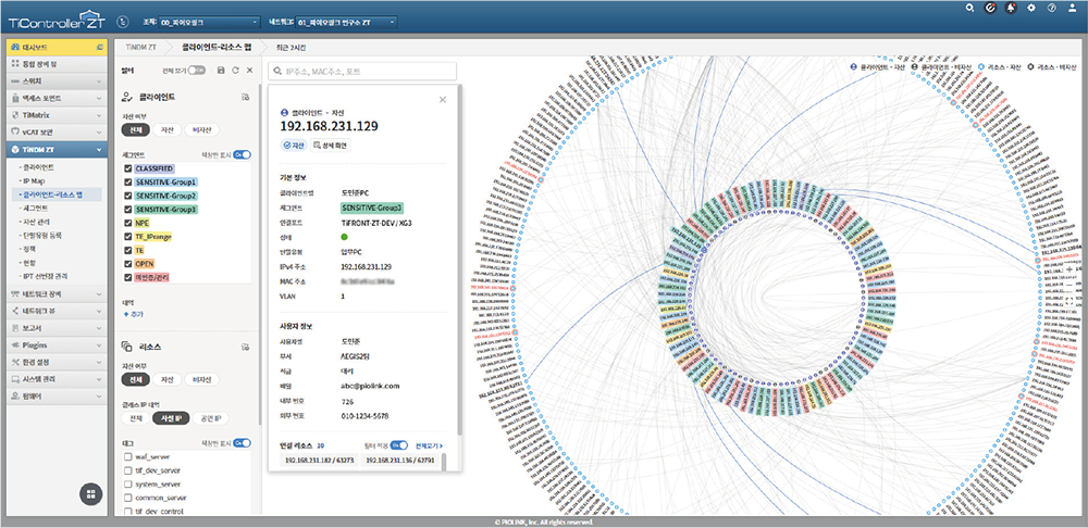 시각화된 정보를 기반으로 관리자가 ‘클라이언트’와 ‘리소스’를 선별하고 지정합니다.