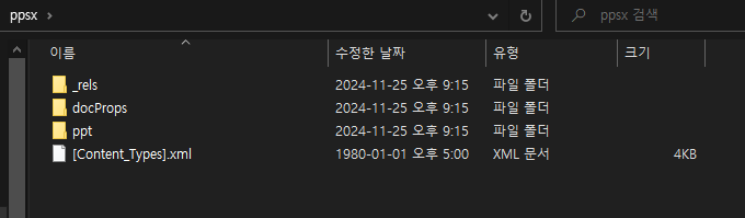 초기 Confucius 그룹은 피싱 메일을 이용해 공격을 진행했다. 해당 메일에는 Document.ppsx 라는 악성 파일이 첨부되어 있으며 공격자는 메일 수신자가 해당 첨부 파일을 다운로드 하도록 유도한다. 해당 ppsx 파일을 열람할 경우 “Corrupted File(손상된 파일)”이라는 페이지가 출력되며, 백그라운드에 악성 스크립트가 실행된다. 해당 파일을 압축해제 할 경우 내부의 xml 파일을 확인할 수 있다.