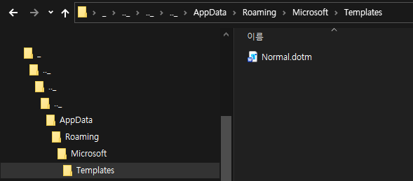 <그림 15> 압축파일 내 Normal.dotm 위치